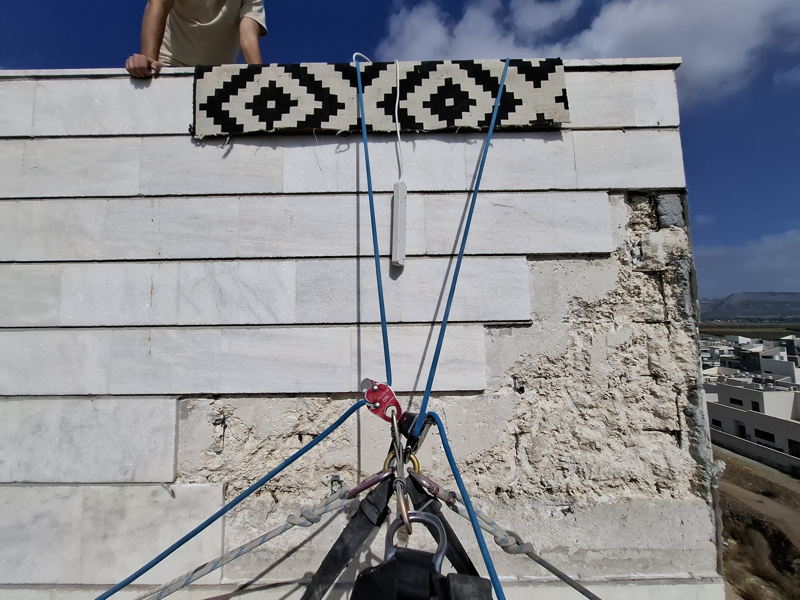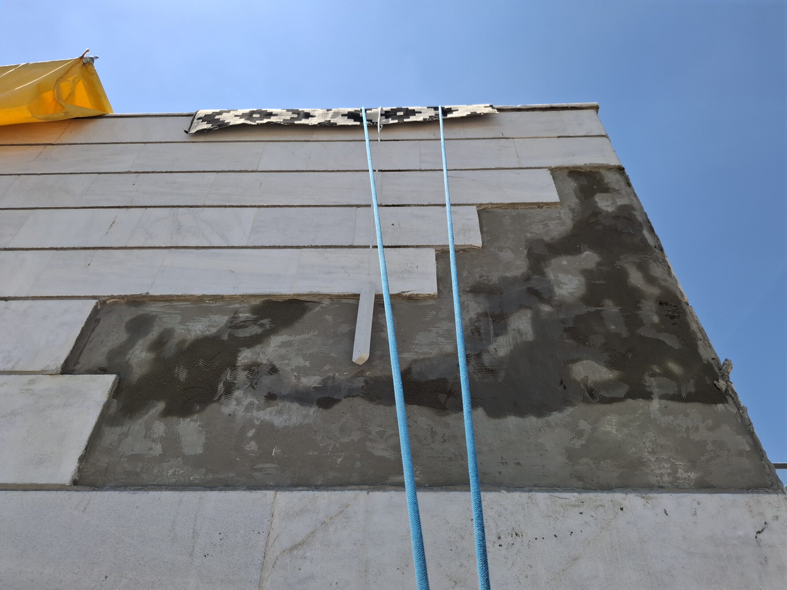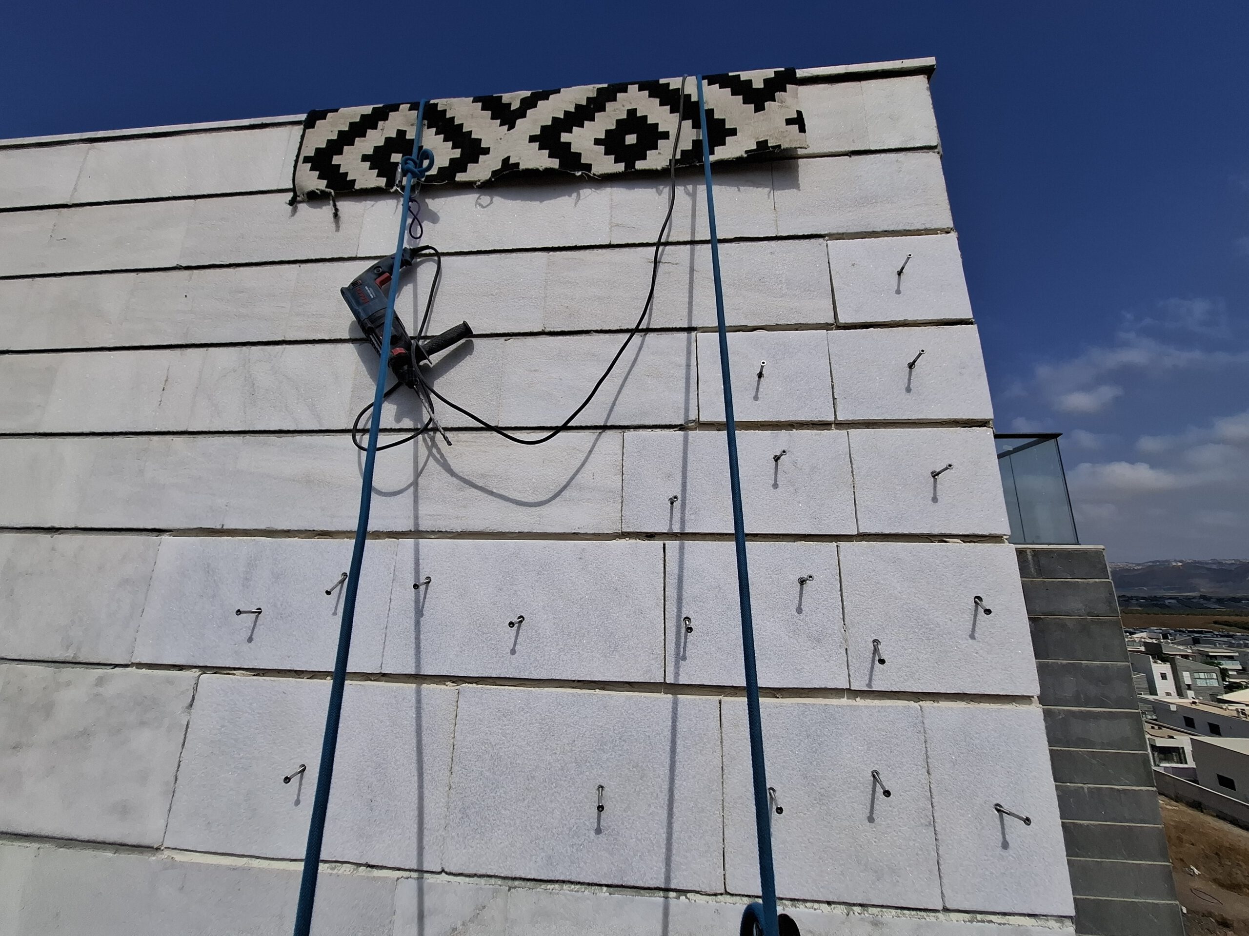 חיזוק והתקנה מקצועית של אריחים לבניינים גבוהים, תוך שימוש בדבקים ובמערכות מתקדמות, להבטחת בטיחות ויציבות לאורך זמן.